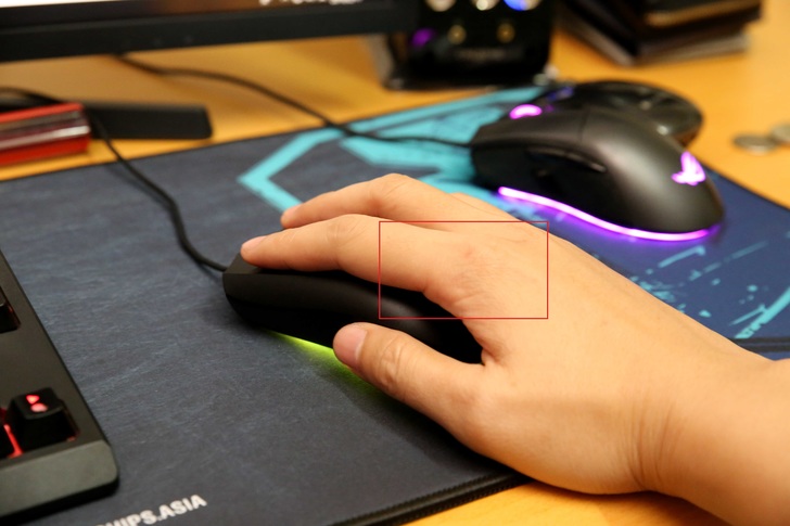 中指與食指的第三節關節剛好可以"饋”在滑鼠上面,長時間使用比較不易疲勞。