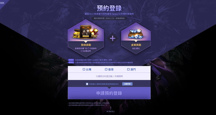 改版更新後,事前登錄的序號將會發送到登錄的手機號碼,只限定使用一次。