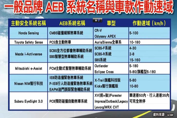 歐盟新車安全評鑑協會(Euro NCAP)自2014年將AEB自動緊急剎車系統