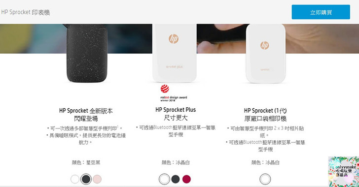 ♡當然厲害的HP Taiwan也有考量到男性的需求,也讓這款HP Sprocket口袋相印機同時就有3種色系選擇,可以滿足大家對色彩的不同喜好。