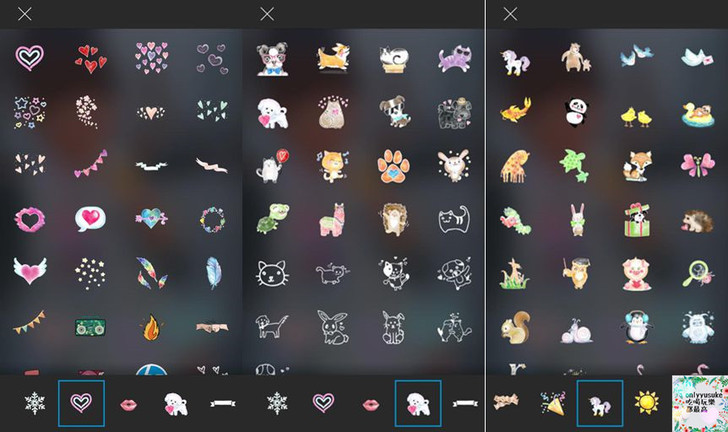 ♡除了可愛的邊框選擇外,也有非常多看了就很有療癒感的各種主題印章圖示。