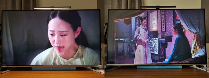 ▲那大電視可以用嗎?一樣可用,55吋電視,使用後補光效果也是非常有效,可以看到電視前方桌面均勻的光線。