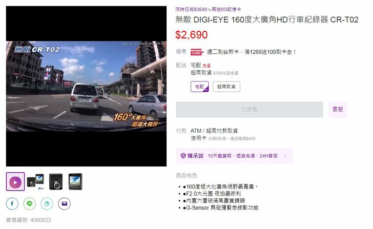 產品特點:使用160度極大化廣角視野最寬廣, F2.0大光圈 可增加夜拍的犀利度,附G-Sensor 遇到碰撞,感測器可緊急錄影,啟動即錄自動開關 車輛啟動即時錄影,熄火時自動存檔關機,監控/行動偵測 可切換行動偵測模式與監控模式,緊急事件錄影 自動偵測事故發生,詳實記錄畫面,容量32GB。(詳細規格請看官網)