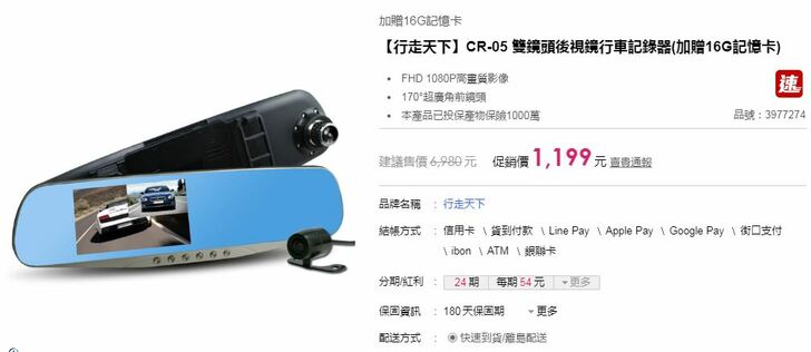 6. 【行走天下】CR-05 雙鏡頭後視鏡行車記錄器
