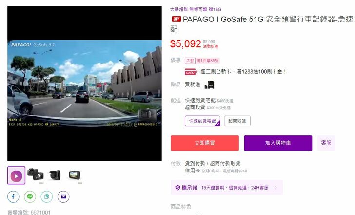 使用160°超廣角大光圈鏡頭和1440P 高畫質,夜視效果增強,大幅降低夜間噪值,錄影解析度採用 Full HD 每秒60張,內建 mini PPG 即時路段資訊顯示,並內建GPS 座標車速資訊和支援胎壓偵測器,有彙整全台道路圖資,內建GPS 精準記錄行車資訊,價雖高,但功能很多,附加一些貼心警示功能疲勞駕駛警示,發生事故時,GPS座標可精準顯示當前所在的方位,方便聯繫道路救援、警察機關或保險單位,可自動切換移動偵測模式,自動啟動錄影,緊急事件錄影,會自動將重要畫面保存到記憶卡內,支援容量128GB。(詳細規格請看官網)