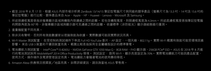華碩官網圖片標示側邊框寬度是 3mm,上邊框是 6.4mm,但是這邊有腳註就往下仔細看內容。