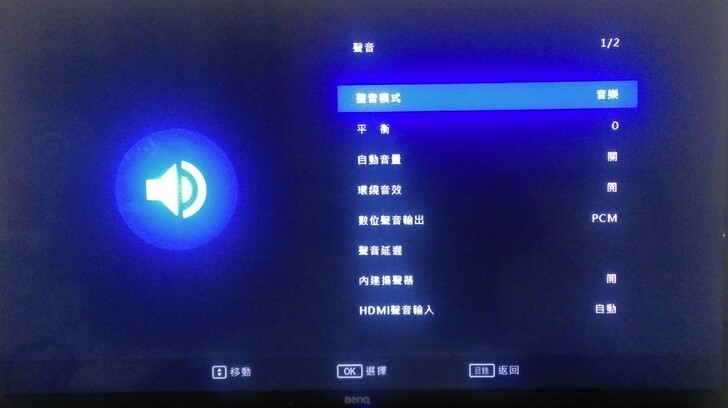 在聲音模式的選單中,有內建 標準/音樂/電影/人聲/用戶等 五種模式可以自由選擇,而且還有環繞音效來搭配聽音樂或看電影時可以稍微滿足一下聽覺享受!