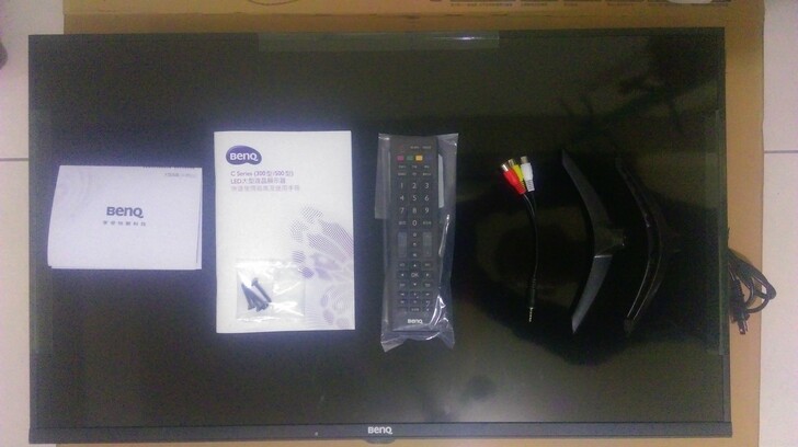 裡面附上一些基本的配備,如遙控器、AV影音線材、說明書、腳架等等,可惜的是,雖然有HDMI連接孔,電視並沒有附送HDMI連接線材,有點小小遺憾!