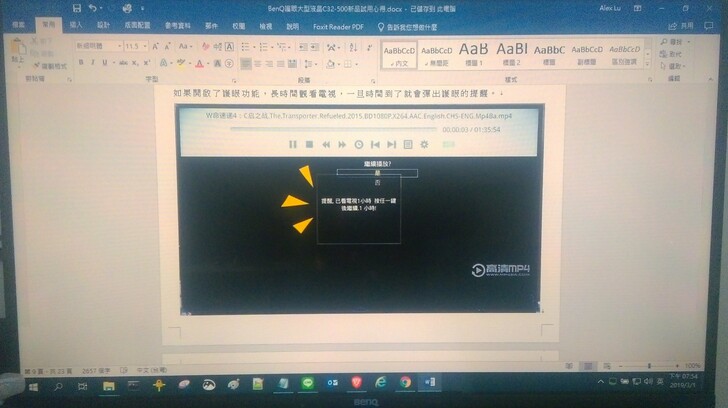 最後,在設定的選單中,比較特別的是有”護眼提醒”及”低藍光”設定,如果開啟了護眼功能,,一旦設定時間到了就會彈出護眼的提醒。而低藍光護眼模式,即可調整減少 -20%、-40%、-60%、-70%的藍光,因為有時候觀看電視節目、追劇影片或是上網遊戲,時間都是長時間在盯著螢幕,如果BENQ強調顯示器有”低藍光”、”不閃屏”等護眼功能,相信長時間下來,對於眼睛的保護還是可以達到一定的效果!