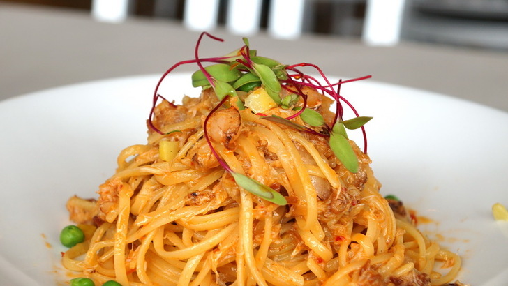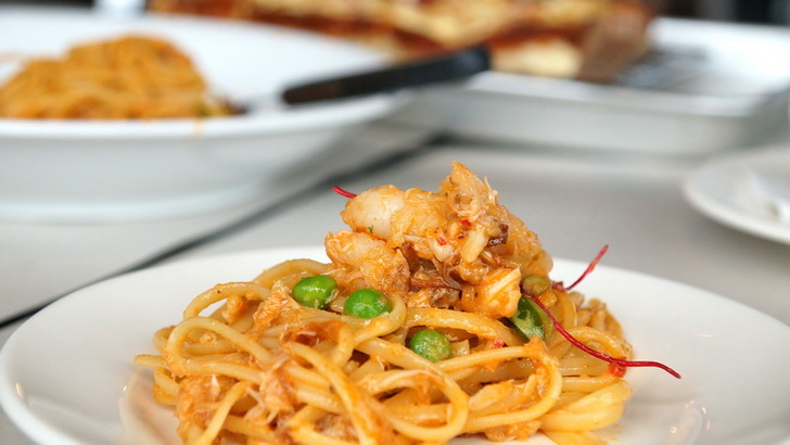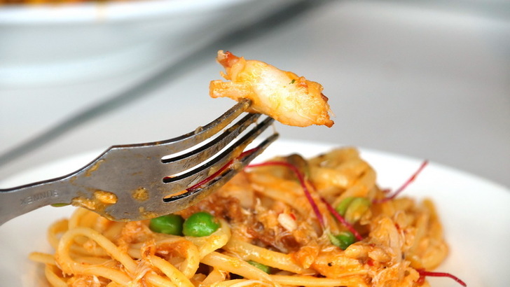 立馬大口享用啊,廚師有控制煮麵條的火候,麵條吃起來比中式麵食稍硬稍Q一些些,但不會過硬,XO醬的海鮮乾貨香氣與螃蟹濃湯融合得不錯,帶有些微的辣度,也有蝦蟹的氣味,是個很可口很開胃的主餐。