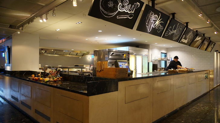 廚房採用開放式設計,早餐時間提供自助早餐給住房的旅客,其他時間雖然看不到那些早餐,但我們還是可以看到師傅現烤披薩。