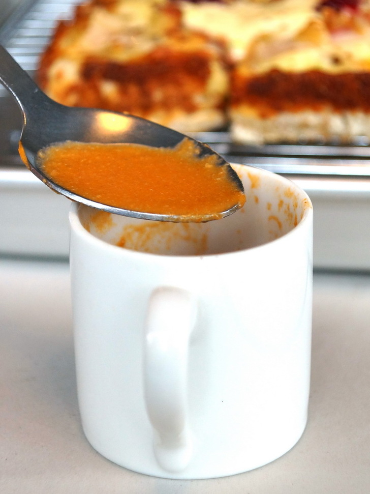 剛剛的蟹味濃湯我並沒有完全倒入麵中,還剩一點來單獨嚐嚐味道,真的是強烈的蝦蟹風味,比起混在麵裡面食用,味道濃上太多。