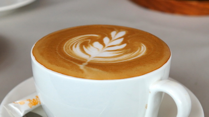 搭配一杯熱拿鐵,不得不說拉花好美啊,有點捨不得喝。