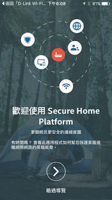 Secure Home Platfrom 服務。一連串的導覽說明,可以選擇略過導覽或是一步步參考說明。