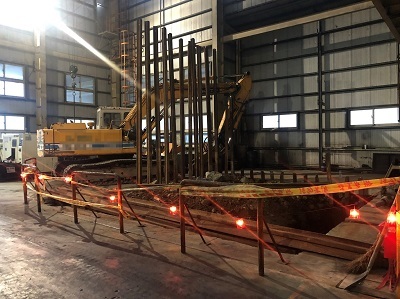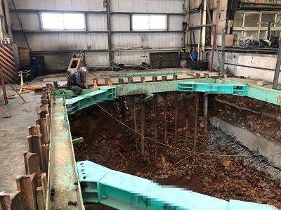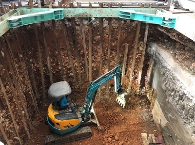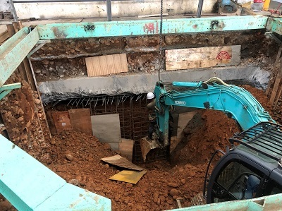 原基礎下方因地層潮濕改用「檔土牆施工法」