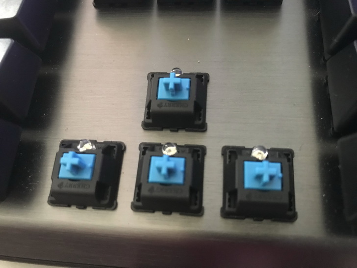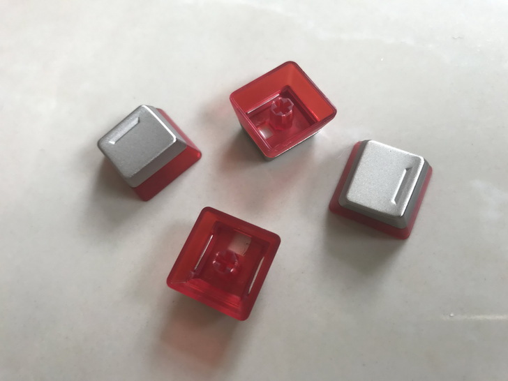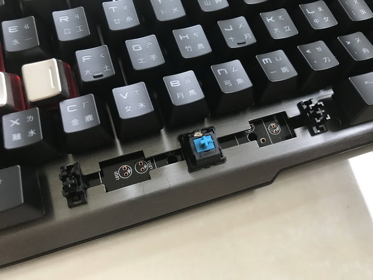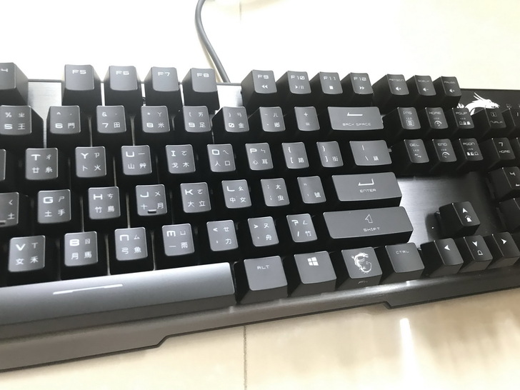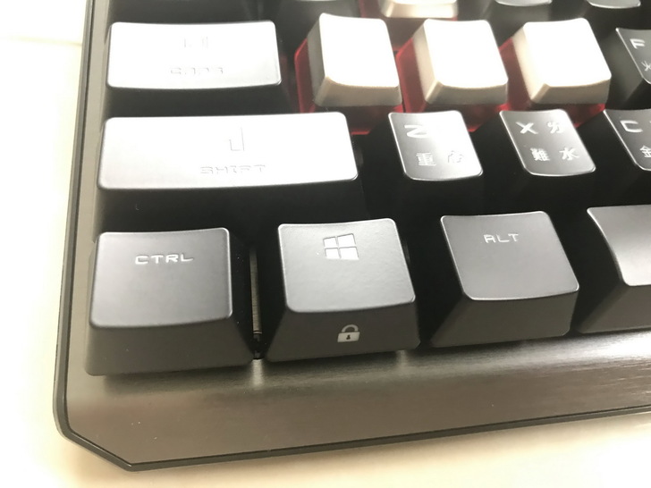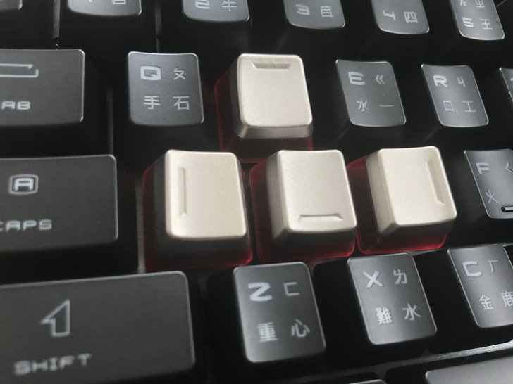 最特別的就是這個已裝在鍵盤上的WSAD金屬鍵帽,上層是金屬材質,底部是塑膠材質,以達到金屬手感,然後底部又是塑膠設計以減輕按鍵時的撞擊,讓使用者有著良好的手感