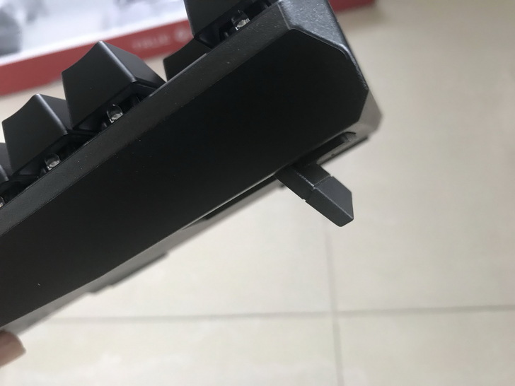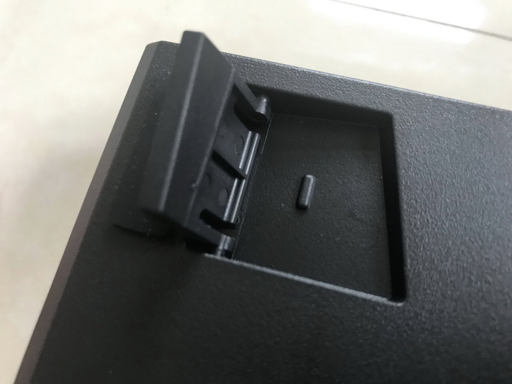 不同於部分鍵盤的溝槽走線設計,GK60是採取大面積凹槽,以壓在鍵盤底下做為整線的理念,小弟還滿喜歡這樣的概念,因為可以壓不少線材,像是耳機、手機充電線等,不用侷限於凹溝