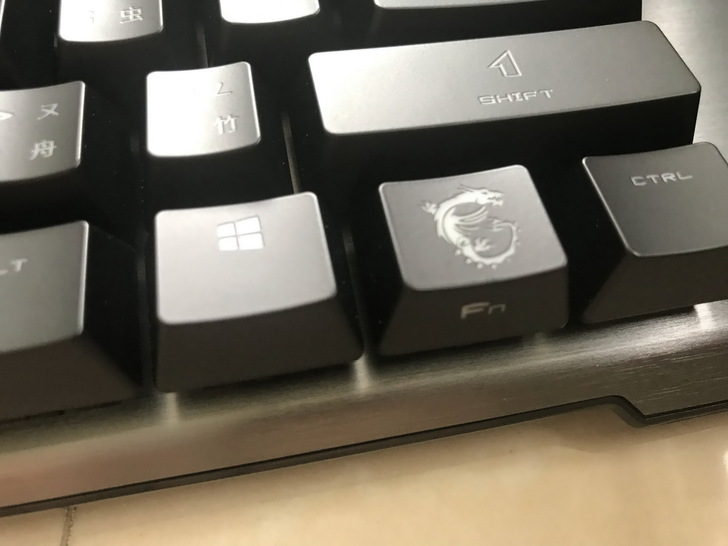 位於右邊SHIFT下的FN鍵,是以微星現在電競LOGO顯示,帥氣啊!