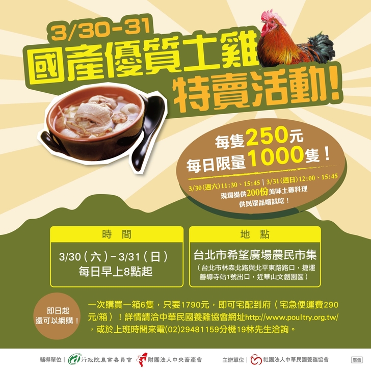 現場還有準備美味的土雞料理試吃會,大家可以踴躍前往選購