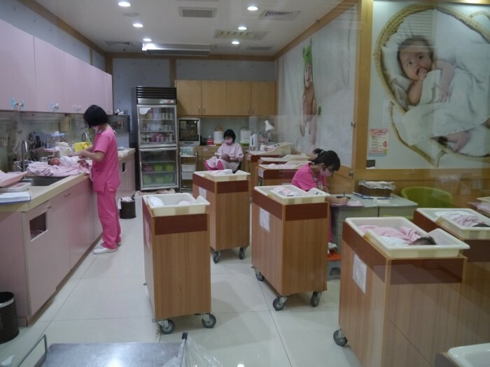 寬敞的嬰兒室裡頭有專業的照護人員24小時全時段悉心照料著可愛的小寶貝們
