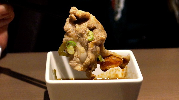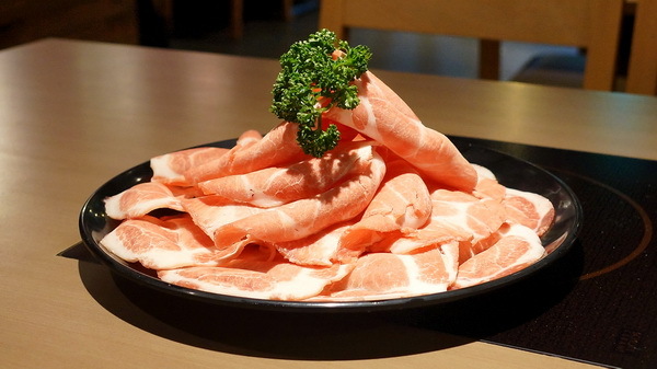 有牛肉與豬肉可選,一大盤有15oz的鮮肉。我選了豬肉,我數了一下,有20片厚切豬肉片。