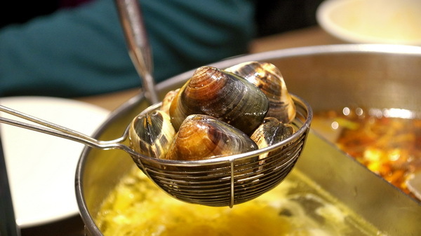 湯頭品嚐過後先來煮海鮮吧,這裡的海鮮也是老闆嚴選,海港直送,八顆蛤蠣先行下鍋,不要煮太久,蛤蠣一開口就要趕快撈起,不要煮到乾巴巴的才撈起,這樣就不好吃了。