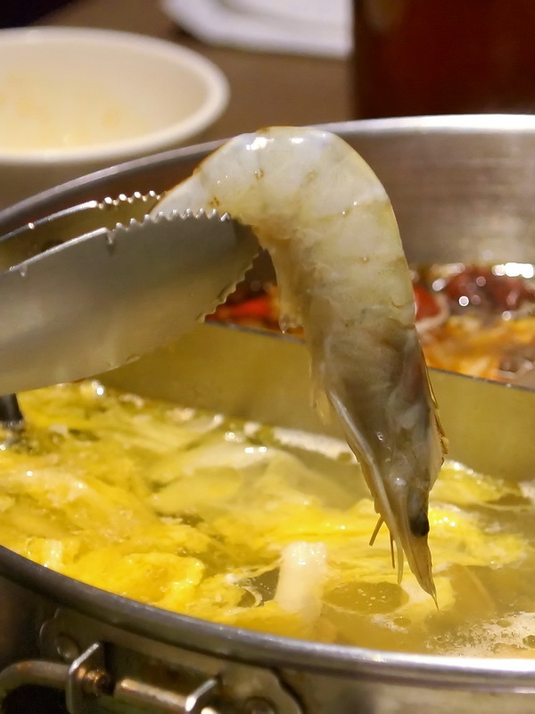 至於酸菜白肉湯底拿來煮海鮮剛剛好,海鮮新鮮就是好吃,蛤蠣飽滿,白蝦肉質結實爽脆。酸菜白肉鍋的酸度很清爽,不會讓你酸到感覺是化工廠產品,湯頭是用酸白菜,干貝絲,陳年金華老火腿,三層肉與蛤蠣去小火慢熬。事實上老闆拍胸保證,無論是麻辣鍋或者是酸菜白肉鍋,他們的湯頭都沒有放人工香料。