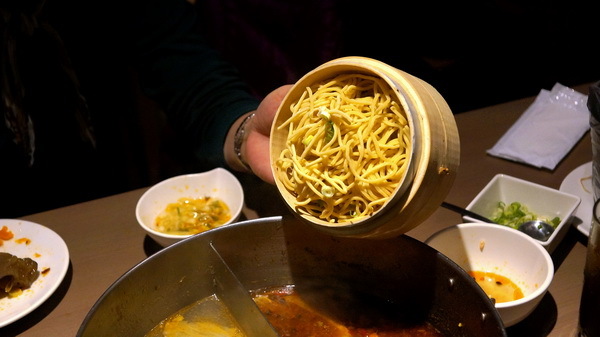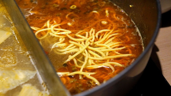 無論酸菜白肉鍋的部份還是麻辣鍋的部份,由於之前火鍋裡煮過肉類與海鮮,無論那一鍋都很鮮甜。尤其是麻辣鍋的部份,麻辣程度已經大大減低,但是香氣還是不減。