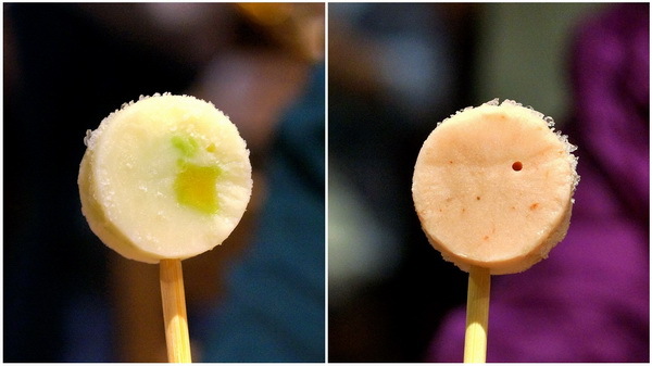 用不了幾分鐘,這些丸子就吸附了麻辣鍋的顏色與香氣。