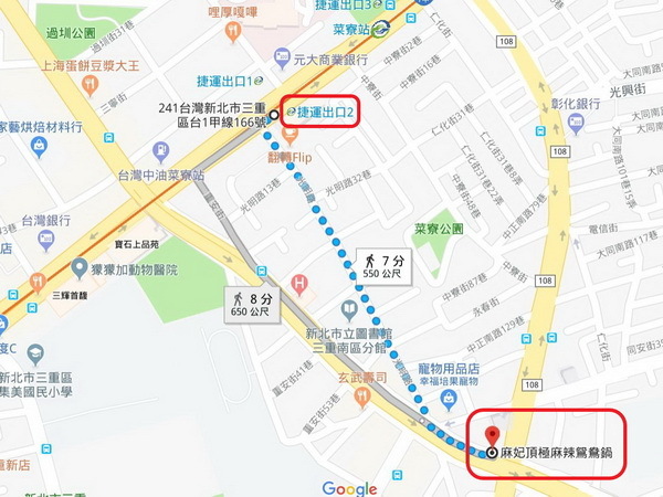 麻妃頂極麻辣鴛鴦鍋的位置在三重的菜寮捷運站附近,聽起來好像有點遠,其實不然,從捷運站2號出口走個10分鐘就到。
