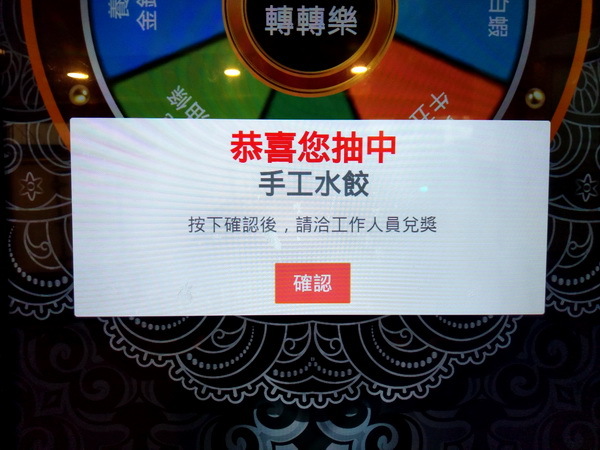 哈哈,老媽抽到了手工水餃,店裡的服務員跟我說,手工水餃的吃法是把生的手工水餃放到麻辣鍋裡去煮,讓水餃皮吸收麻辣湯汁,這樣吃起來很夠味,這種吃法我還是第一次聽到。