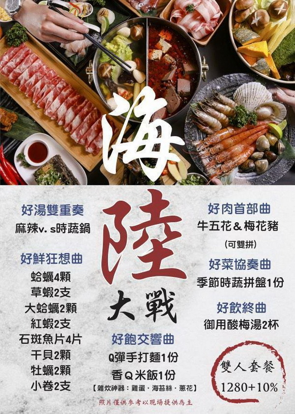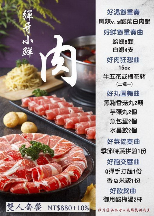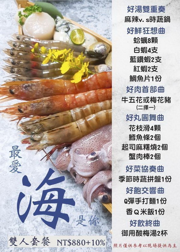 簡單來說,第一種套餐肉類與海鮮的份量給好給滿,第二種套餐是海鮮比較多,第三種套餐則是肉類比較多。其實我很想點第一種套餐,一次到位吃飽飽,但是我又考量老媽的小鳥胃,所以我最後點了「彈牙小鮮肉」套餐,沒辦法,誰叫我是無肉不歡的人啊。