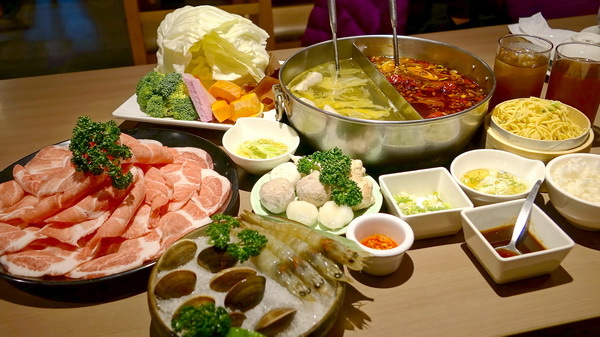 麻辣鴛鴦鍋搭配15oz的頂級豬肉,八個蛤蠣與四隻白蝦,四種不同的丸子,蔬菜盤……這麼豐盛的一餐,加上工作人員的熱情服務,880元值得。