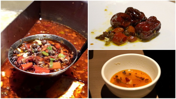 當然,你也可以沾點白醋來吃。加了香油的白醋其實與麻辣鍋裡的各色食材也很對味。