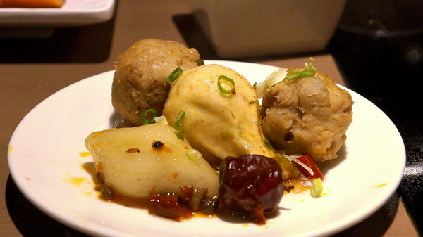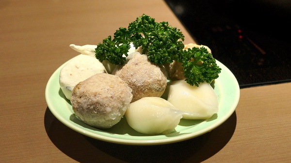 黑豬香菇丸,芋頭丸,魚包蛋與水晶餃各兩個。