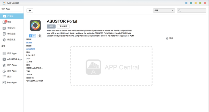 此外這台 AS3102T v2 也支援 ASUSTOR Portal,可以直接將從 NAS 將 ADM 的畫面重送到螢幕。