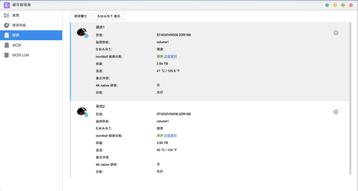 因為是以價格好入手為導向,這次就搭配兩顆希捷的 IronWolf 4TB,目前 4TB 的 NAS 硬碟是最好的甜蜜點。