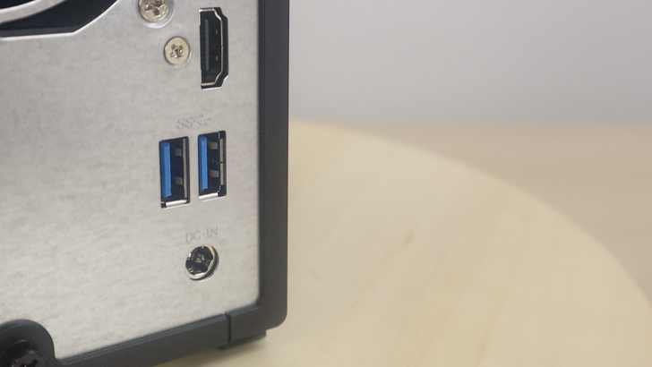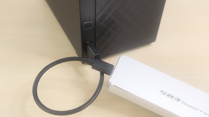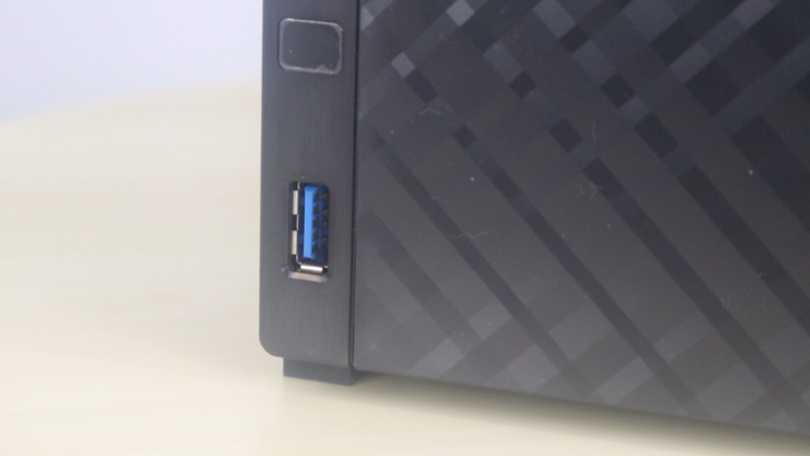 AS3012T v2 前置有藍色的 USB3.1 Gen1 Type A,這樣放在桌上使用或櫃子就更加彈性,要連接 USB 就不用把機器挖出來。