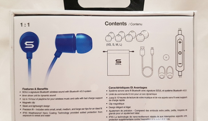 ▼ 內容物:SOUL Pure Wireless Plus 高性能藍牙入耳式耳機*1、4種尺寸耳塞(XS.S.M.L)、替換耳翼*1、充電線*1、收納袋*1、說明書。