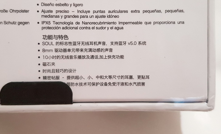 ▼ 盒裝背面:耳機的 1:1 照片,以及盒裝內的配件圖,下面則列出 Pure Wireless Plus功能與特色。