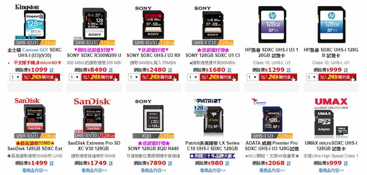 ▲琳琅滿目相同容量的產品,卻因產品廠商/品質有所不同,造成產品有著巨大的價差