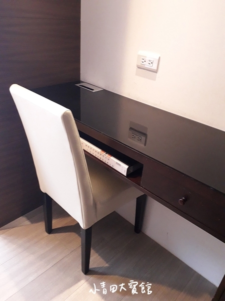 很有質感的書桌椅,收納空間足夠,書桌部分可以方便使用筆電或是書寫,如果先生要來這處理公事也可以,況且這還有無線有線上網,不用擔心沒網路不能做事,這段時間我有發現先生比我愛這裡,好像在這生活他還比較自在