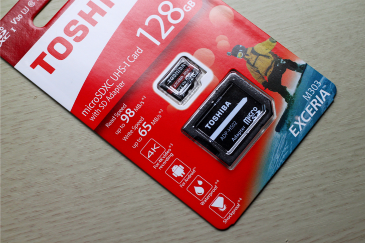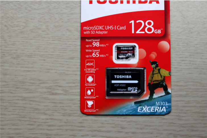 在數據上來看大小為microSDXC128G、每秒讀取速度為98MB/s、寫入速度為65MB/s、支援4K錄影、支援Android裝置、防水等級IPX7、經過5米掉落測試、可經過ISO7816-1標準的X光防護