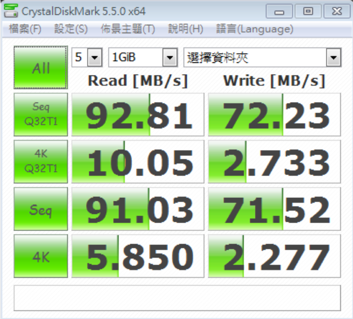 M303的包裝的讀取速度為98MS/s、寫入速度為65MB/s,也是符合包裝上的速度