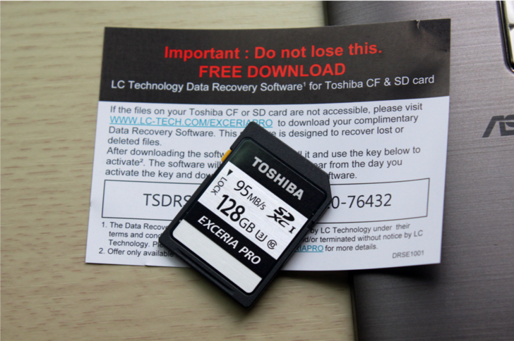著實放心不少,另外在盒裝內也附上了數據恢復軟體序號,能夠恢復剛不小心刪除的檔案,不過如果記憶卡格式化,就沒辦法恢復了