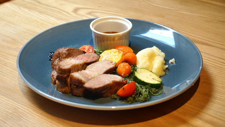 除了豬肉之外,還有一些火烤蔬菜與馬鈴薯泥當作配菜