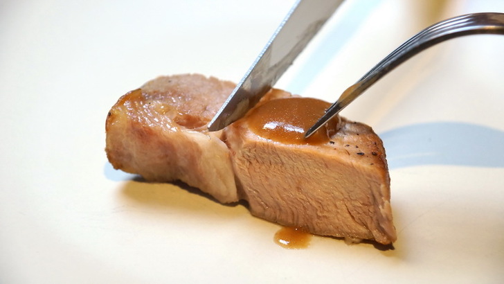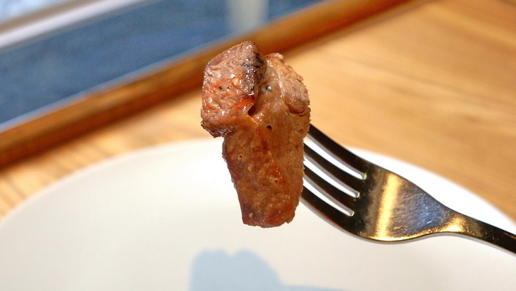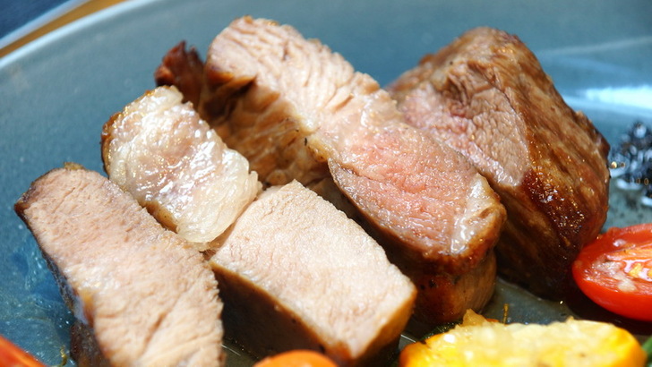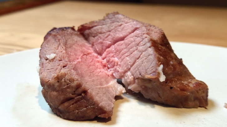 這真的不是牛肉喔,是如假包換的豬肉,再提醒一次,並非所有的豬肉都能烤到七分熟後食用!!