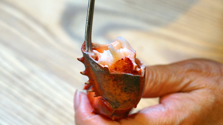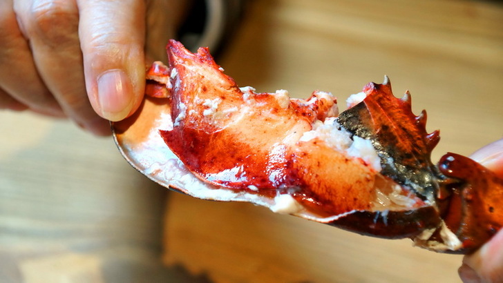 關節處則利用小叉將波士頓龍蝦肉挑出來