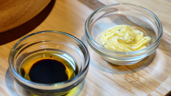 同時附上油醋汁(巴薩米克醋+橄欖油)與松露奶油。