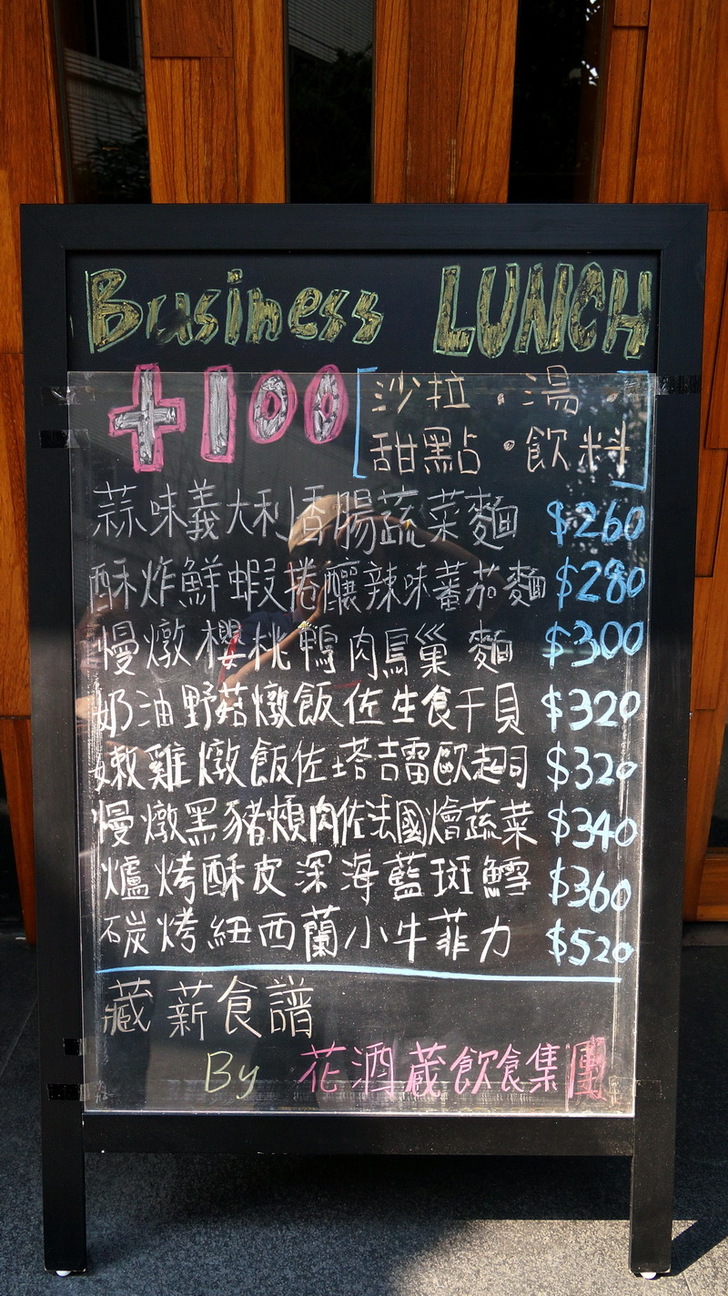 最後是商業午餐的小看板,兩三百元就有一份商業午餐,加一百元就可以升級套餐。